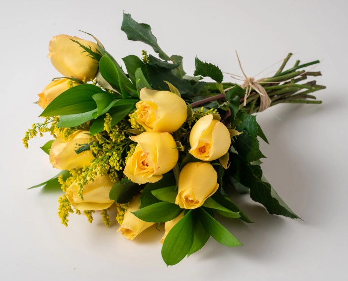Surpreenda seu amor com esse presente especial da Bete Flores. São 15 Rosas Amarelas, envolvidas em Ruscus, Tango e acabamento em ráfia; acompanha uma garrafa de vinho tinto – deixando tudo mais romântico!