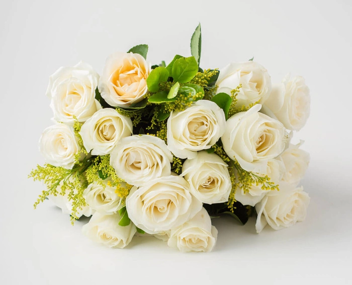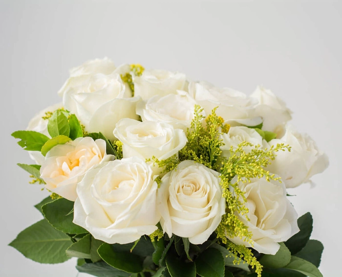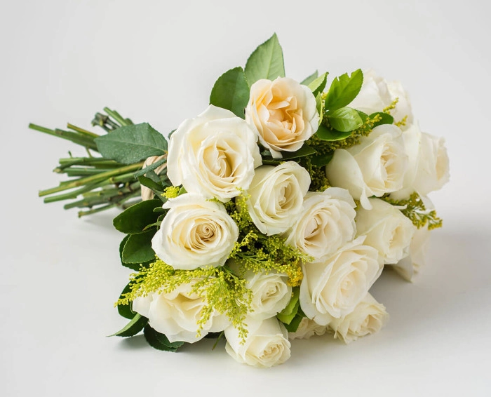 A pureza das rosas brancas é a melhor opção para você presentear aquela pessoa especial. Este buquê, de talo longo, é confeccionado com 19 flores brancas, envolvidas em Ruscus, Tango e acabamento em ráfia.
