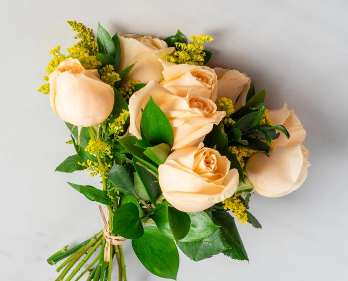 Excelente para presentear em qualquer ocasião, este buquê contém 8 rosas champagne de talo médio, envoltas por Ruscus e com acabamento em ráfia. Acompanha ainda um urso de pelúcia de 30 cm, deixando o presente ainda mais carinhoso.